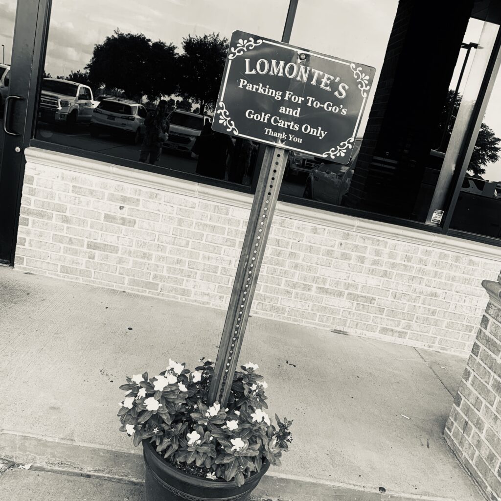 Met some friends from Katy for dinner. Good halfway point is near my old neighborhood and this was always one of my favorite restaurants when I lived in the Richmond/Pecan Grove area. Plus, I ran into my old neighbor and a dear friend. I love when it seems like it is a small world. Great evening catching up with friends. (Plus, Steve likes this sign and now want to know if we can get a golf cart – LOL!)