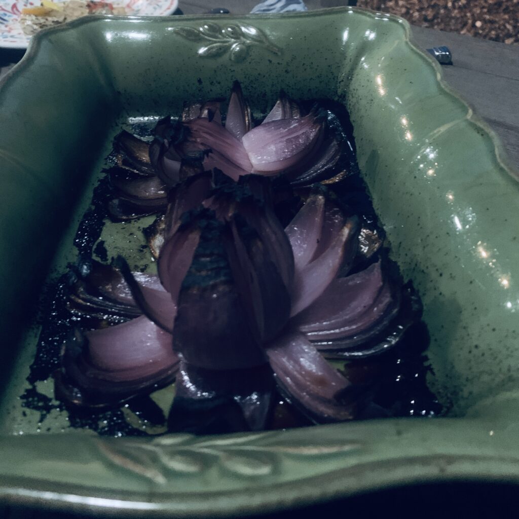 I Loved having friends in to visit this week. Steve made us a fantastic sea bass dinner and surprised us with a baked onion that looks like a lotus flower. I’m impressed! Great food and great friends. Life is good!